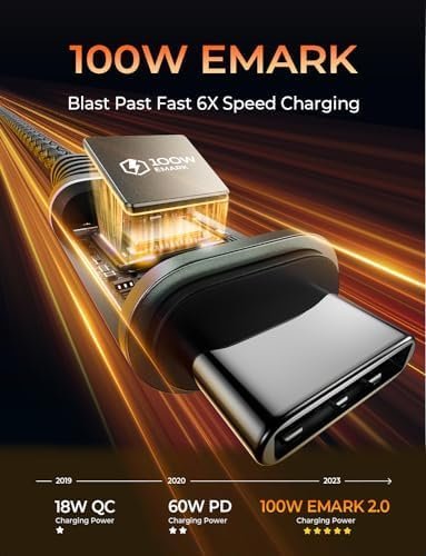 🔋6X Faster, 2023 Upgrade 100W E-Mark Chip: 100W super fast charging usb c to usb c Cable is built in the best power delivery certified E-Mark dual chip, which turbo charge supports USB PD fast charging and provides comprehensive protection to devices battery and adapters, keeping you in light-speed charging and safe. AINOPE is born for safe and fast charging. Please note: This 100W USB C cable data transfer needs to pass through the USB 2.0 USB C port.