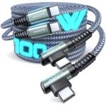 🔋”L” Connector Design, Never Bending & Breaking: This right angle usbc to usbc cable charge with an innovative 90 degrees “L” design. It’s more convenient and comfortable for playing games, watching videos, reading e-books while charging. A comfortable grip brings you an immersive operating experience, It completely solves the troubles of ordinary wires that are easy to block hand, unintentionally interrupted and the bending of the connector while using.