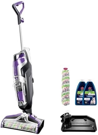 PICK UP PET MESSES. CrossWave Pet Pro multi-surface cleaner comes with a Tangle-Free Brush Roll, Pet Hair Strainer and PET Multi-Surface Formula with Febreze Freshness