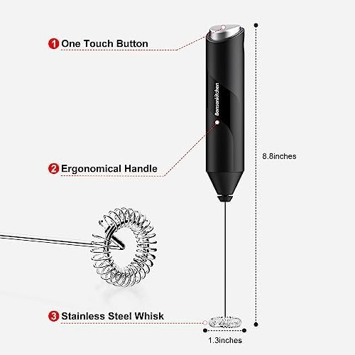 Bonsenkitchen Milk Frother Handheld, Electric Foam Maker with Stainless Steel