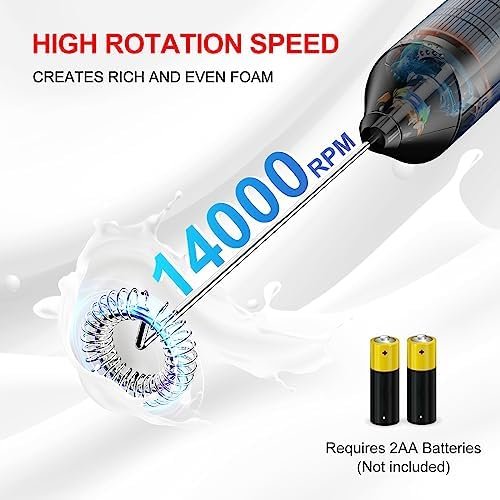 EASY TO USE & CLEAN: Easy press the button to start frothing, then you can effortlessly get rich, creamy foam. Cleanup for this frother & matcha wisk is also easy and fast! Simply put the stainless-steel whisk under water and turn it on. It will clean instantly! Battery operated, 2 AA batteries NOT included.