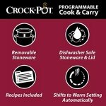 The Crock Pot Programmable Cook & Carry Slow Cooker with Digital Timer is made for portability. Its secure locking lid and rubber gasket create an airtight seal, helping to prevent spills on the road food stays inside, and you arrive at your destination without any worry or mess. Bring this portable slow cooker to potlucks, family gatherings, tailgating, parties and more. The digital panel allows you to customize your cooking time between 30 minutes and 20 hours, and set the temperature on High, Low, and and Warm. After cooking is complete, the slow cooker will automatically shift to Warm for up to 6 hours to help maintain food temperature and flavor. With dishwasher safe components, this is the perfect digital slow cooker just about anytime you need to transport food prepared at home. Recipes included. Weight: 16.18 Pounds,Cord length: 24 inch.