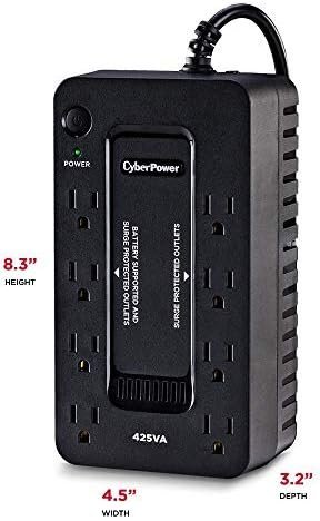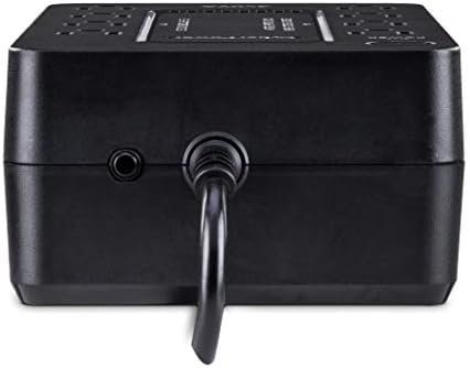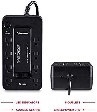 8 NEMA 5-15R OUTLETS: Four battery backup & surge protected outlets; Four surge protected outlets; INPUT: NEMA 5-15P plug with five foot power cord