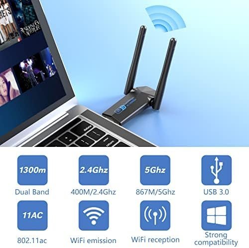 ⚡ 【USB 3.0】Excellent transfer speed of USB 3.0 wireless adapter, transferring data up to 10 times faster than USB 2.0, also compatible with USB 2.0 USB 3.0 upgrades laptops, desktops and computers to AC1300 WiFi speeds for smooth HD streaming and fast downloads.