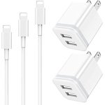 Package includes: 5-Pack Dual Port USB wall charger with 3ft + 6ft + 10ft charger cable cord.